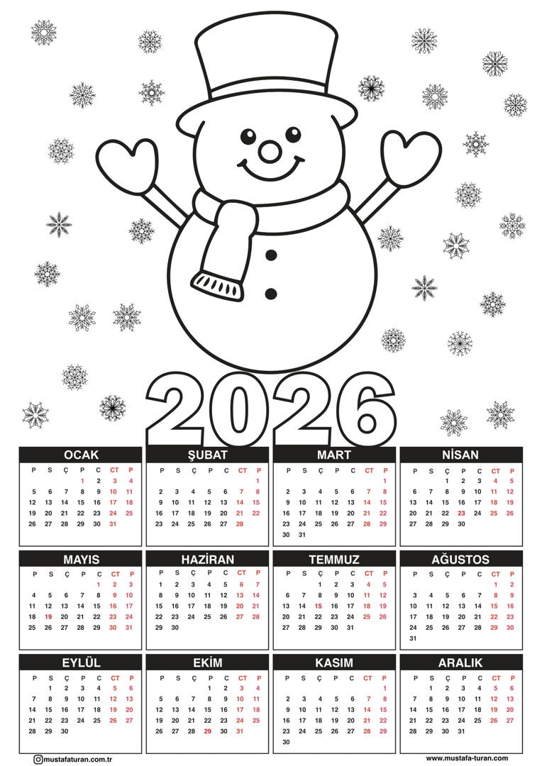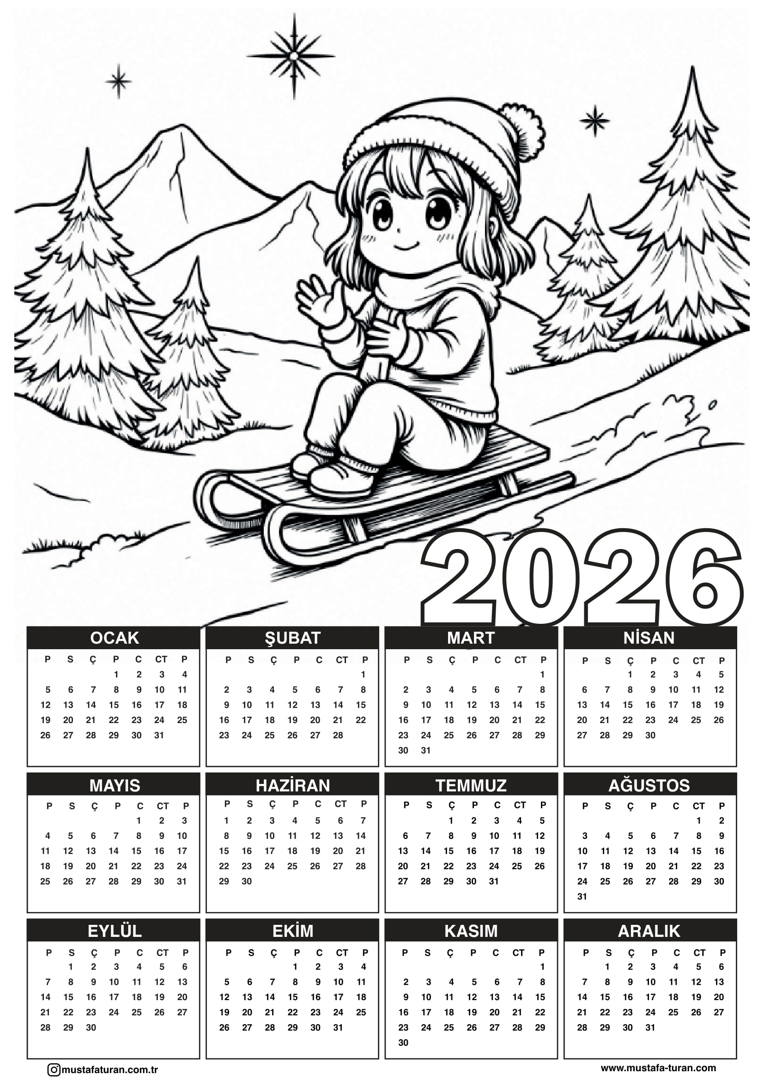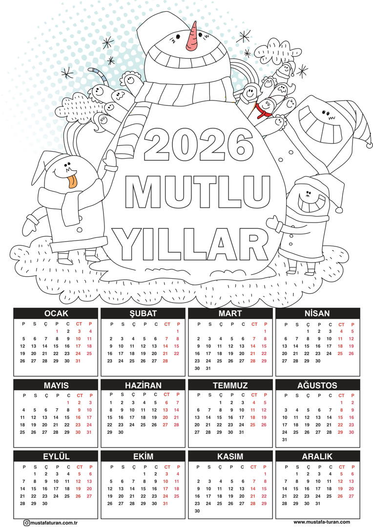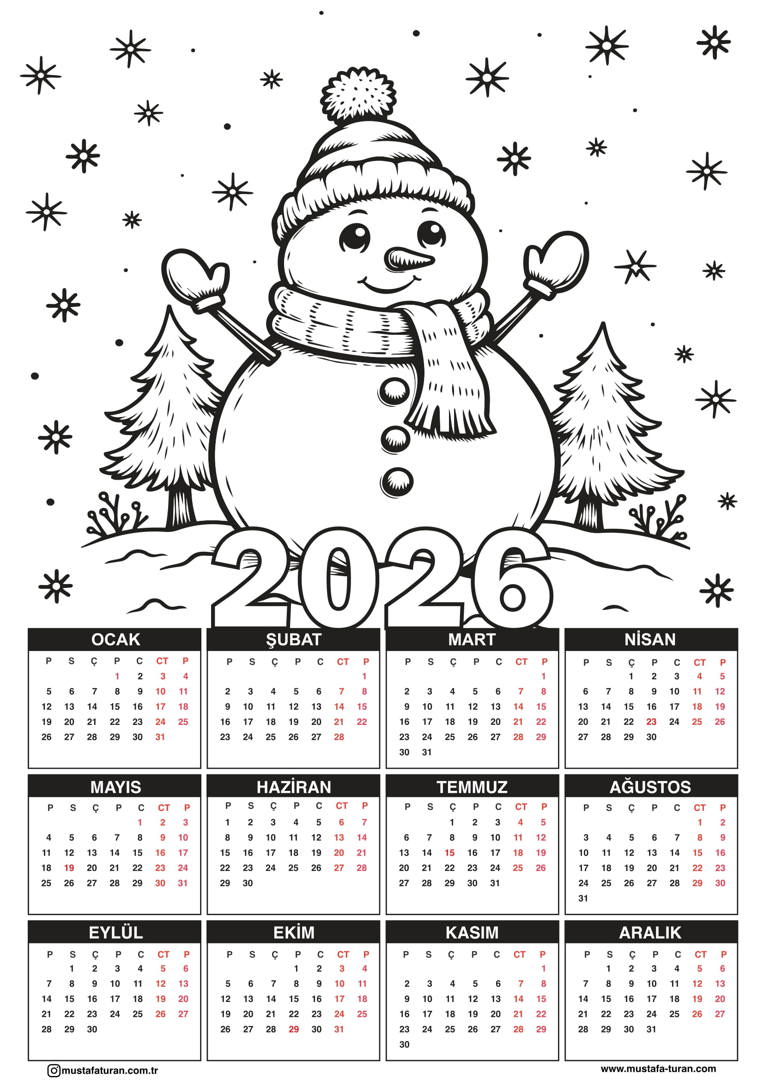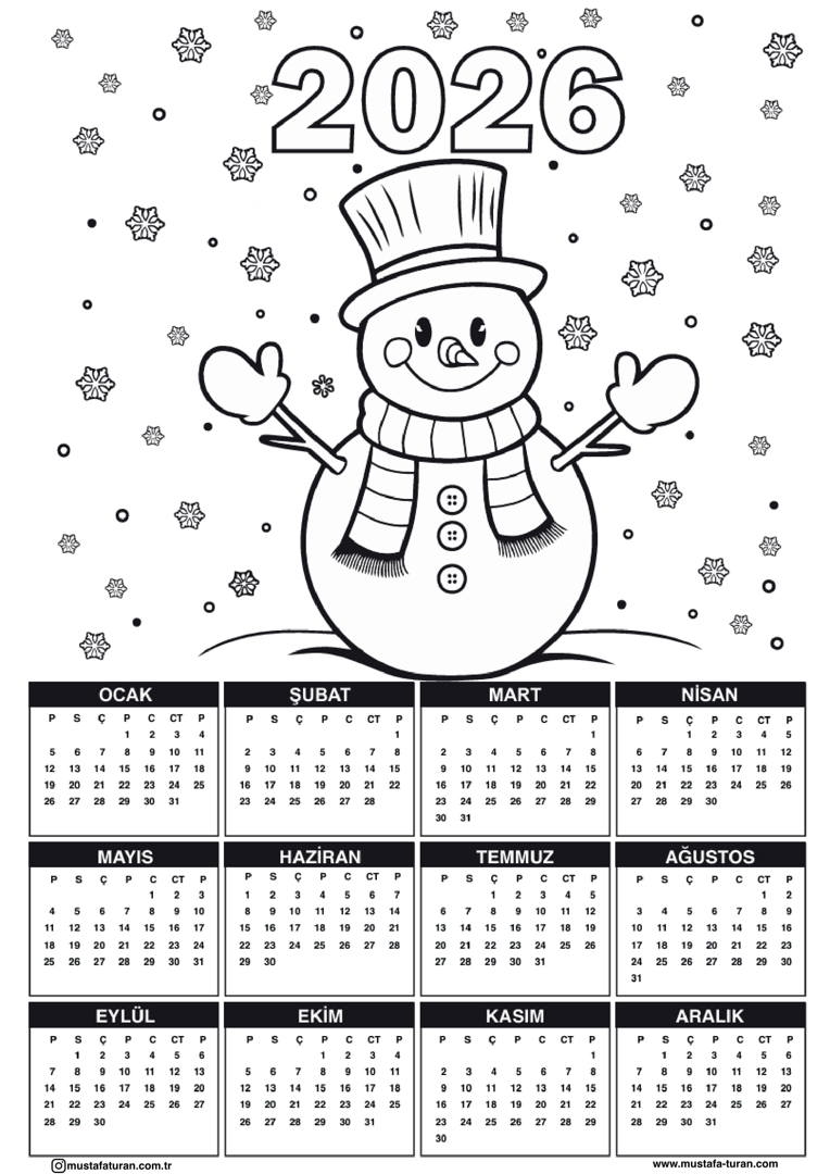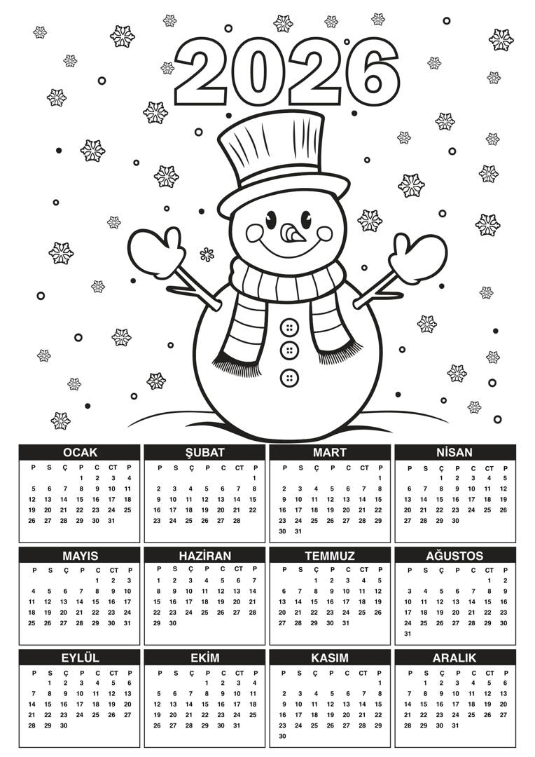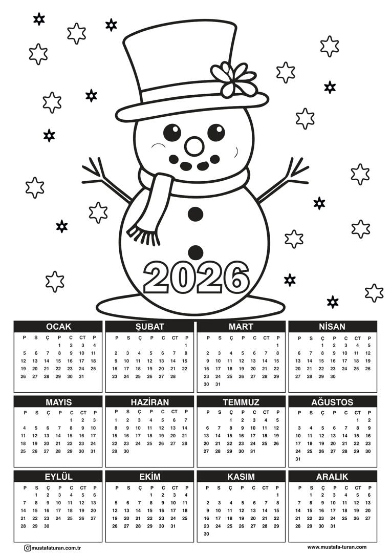 2026 Yılının Hepimize Sağlık Mutluluk ve Huzurun Getirmesi Temnnisiyle. Farklı İçerikler ve Görsellerle Hazırladığımız 2026 Takvimi Boyama Etkinlikleri