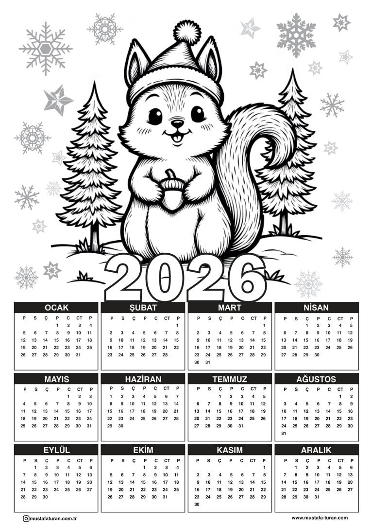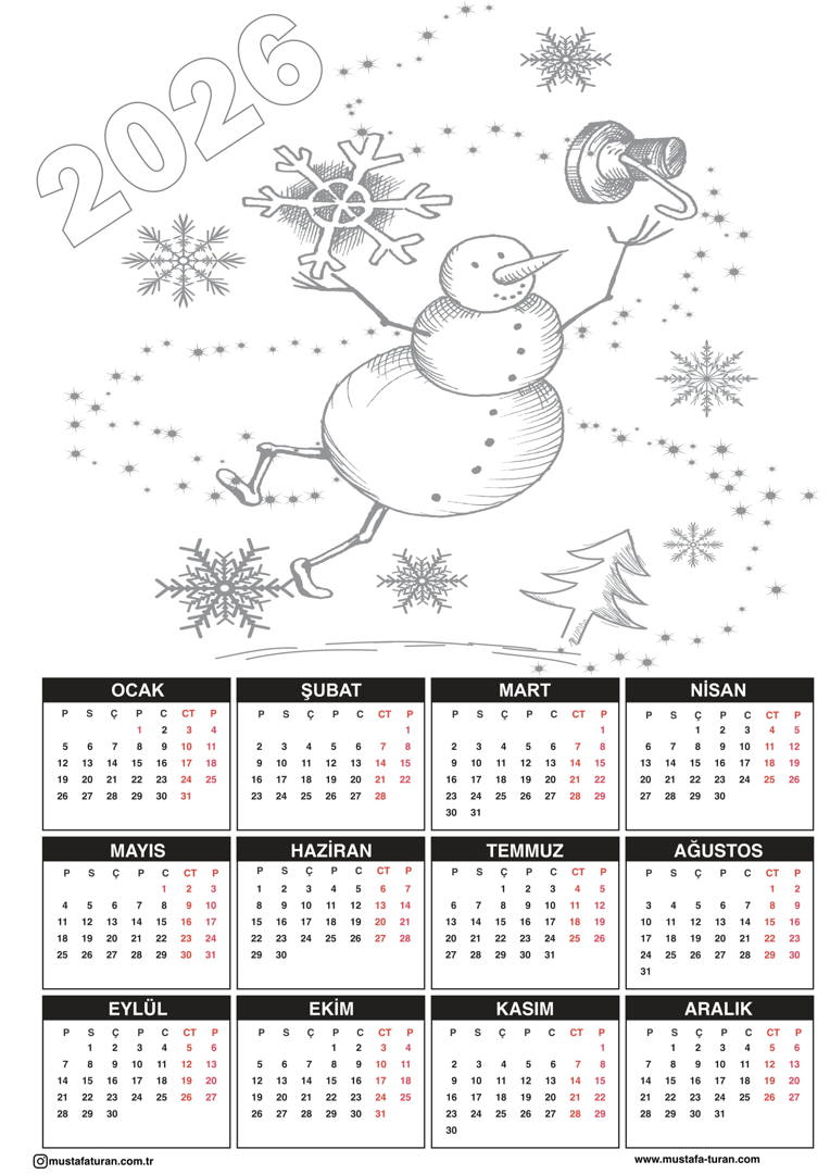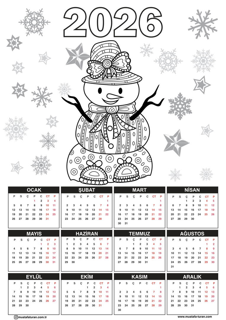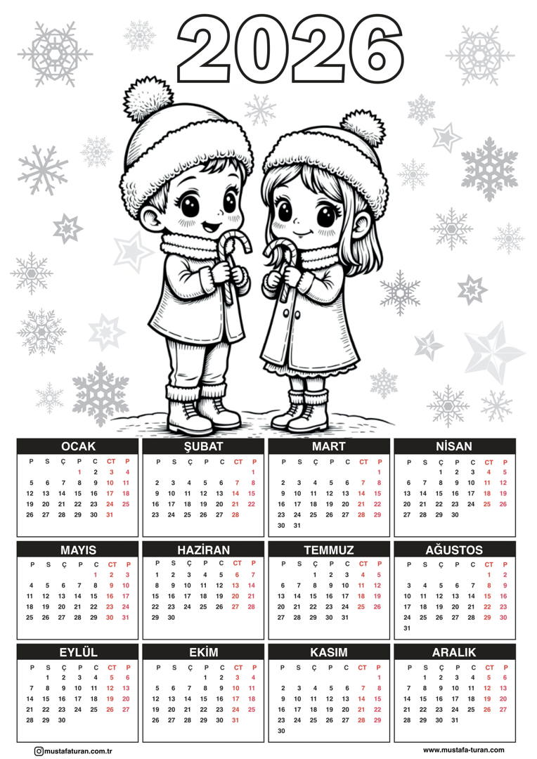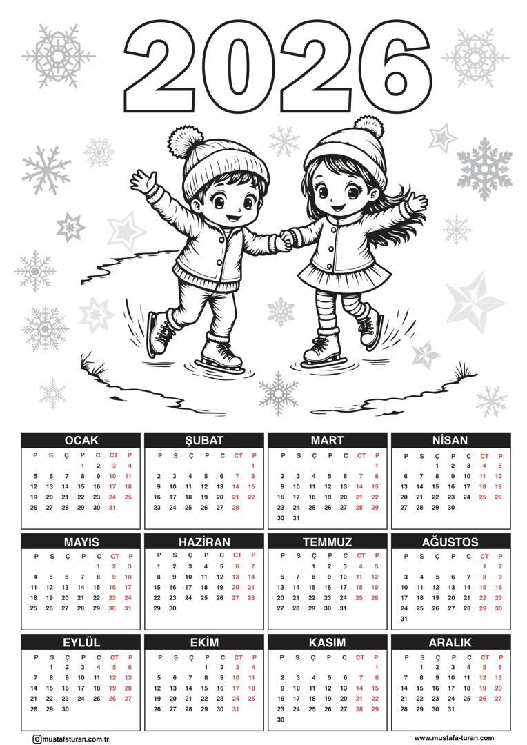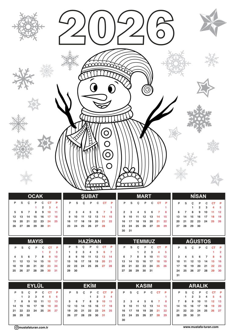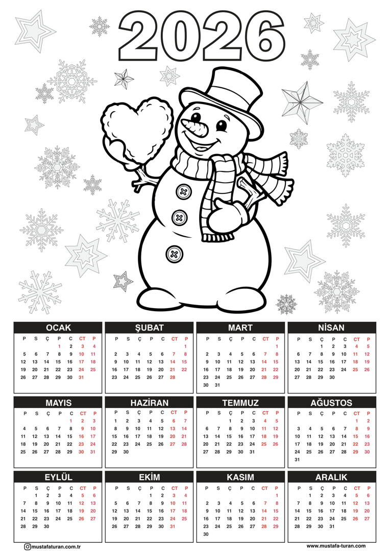 2026 Yılının Hepimize Sağlık Mutluluk ve Huzurun Getirmesi Temnnisiyle. Farklı İçerikler ve Görsellerle Hazırladığımız 2026 Takvimi Boyama Etkinlikleri