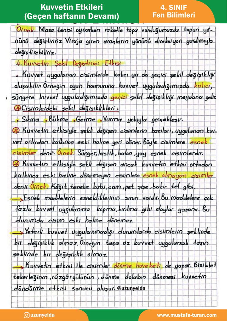 📌Fen Bilimleri-Kuvvetin Etkileri(Geçen haftanın Devamı)
