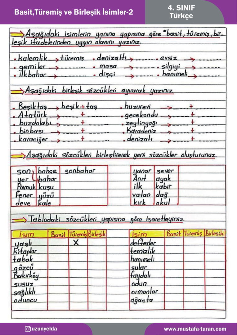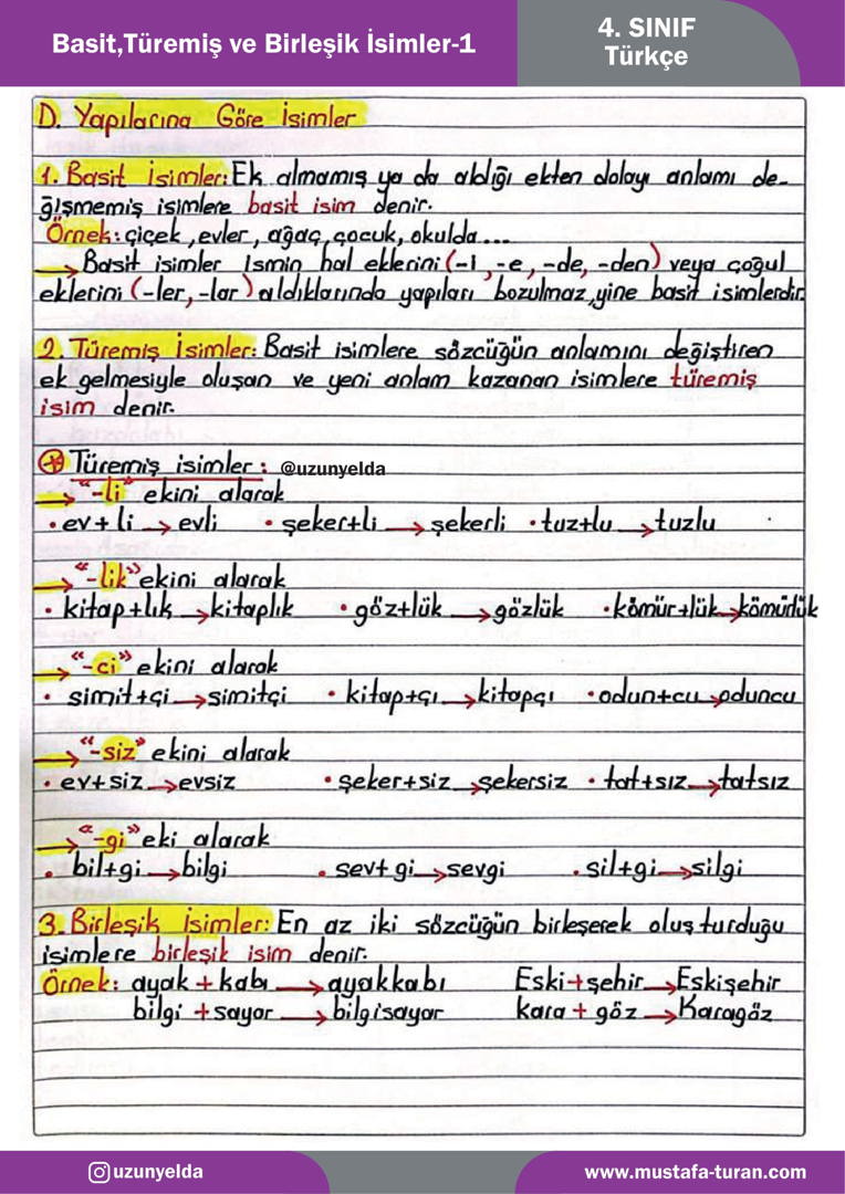 📌Türkçe-Basit,Türemiş ve Birleşik İsimler