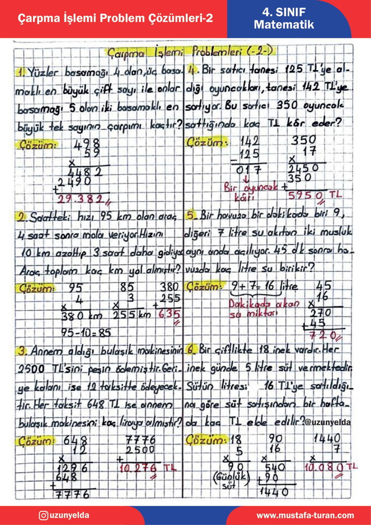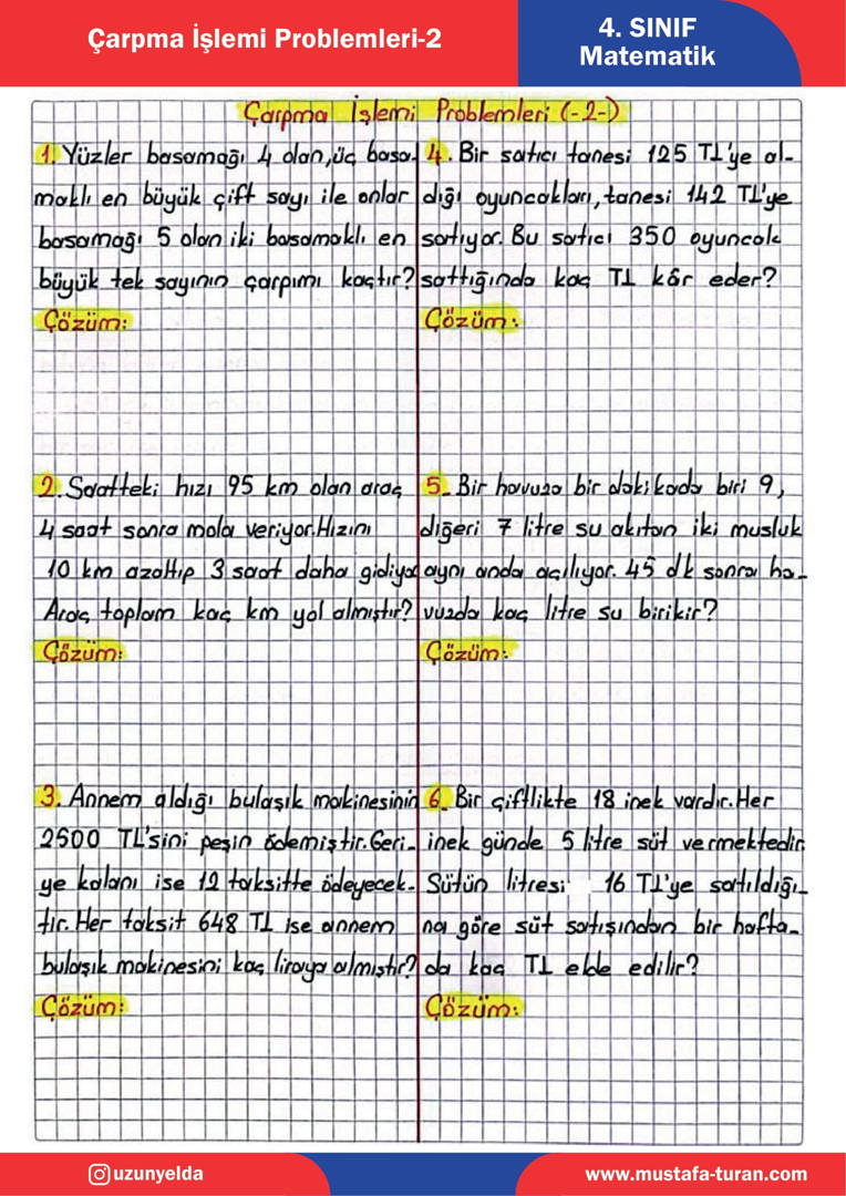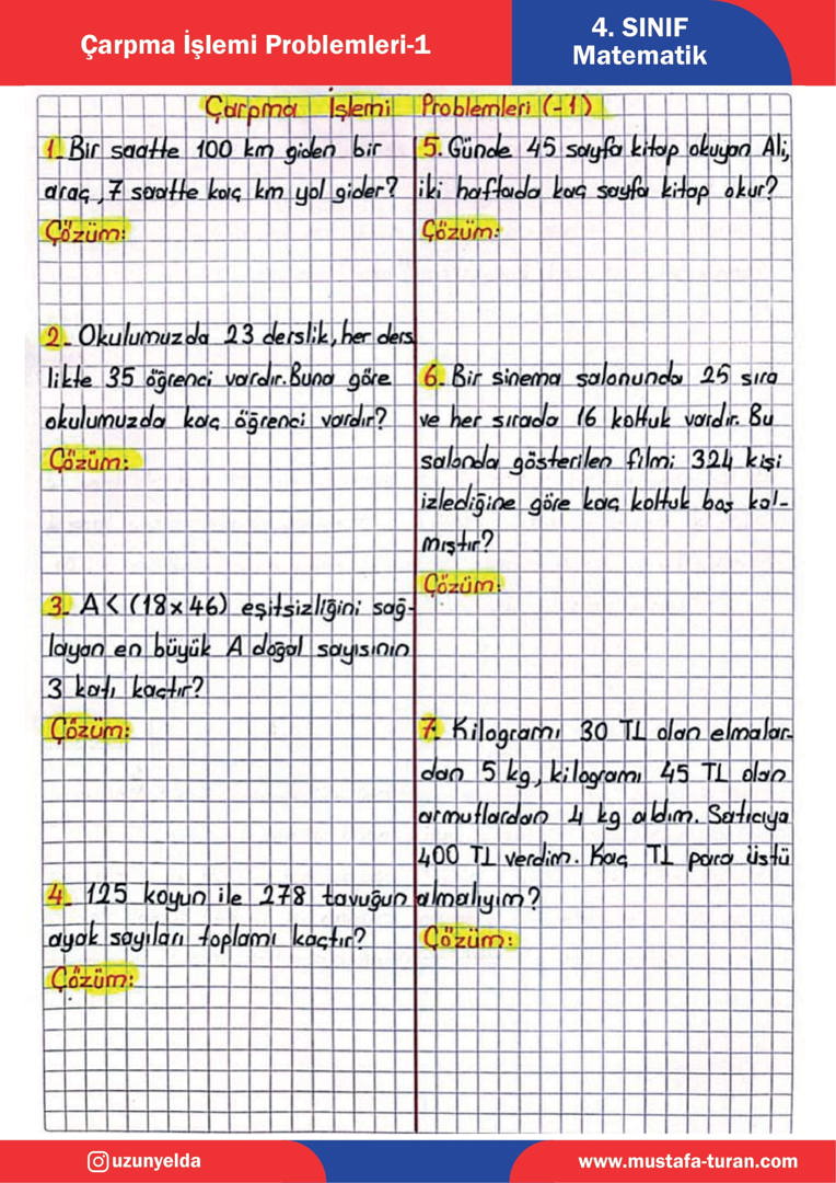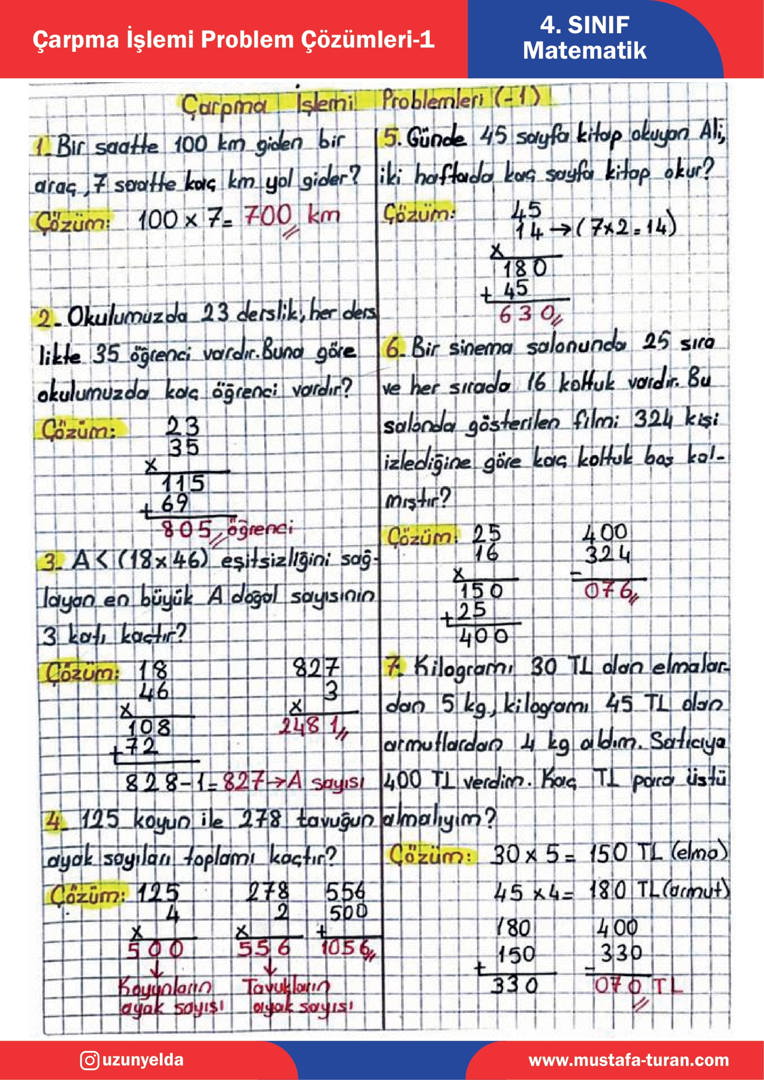 📌Matematik-Çarpma İşlemi Problemleri Bölme İşlemi