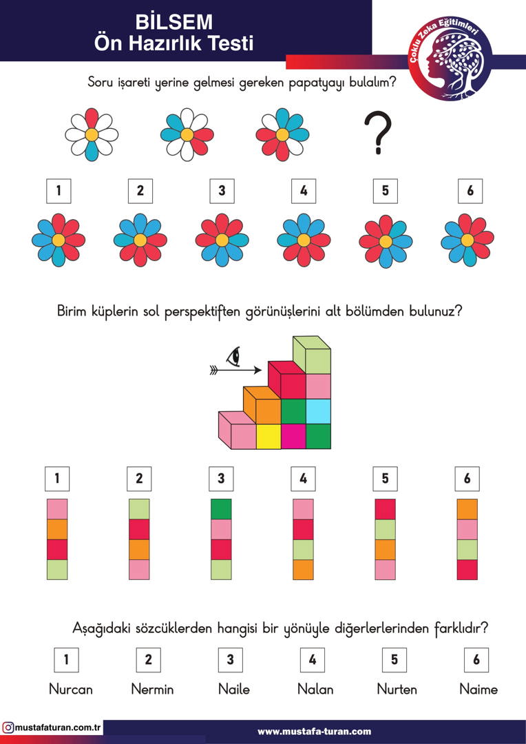 / Çoklu Zeka & Dikkat Güçlendirme Etkinlikleri / BİLSEM Ön Test Sınav Avkiviteleri