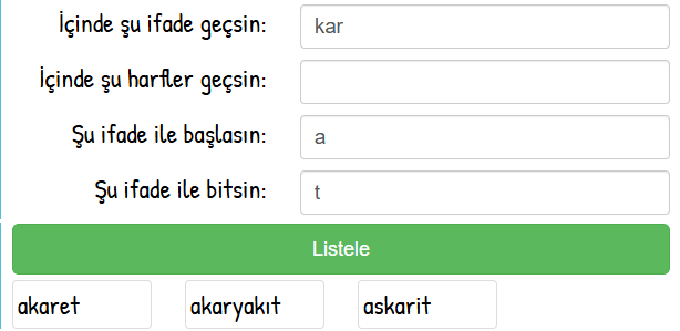Kelime Bulma robotunu kullanarak belirttiğiniz kriterlere