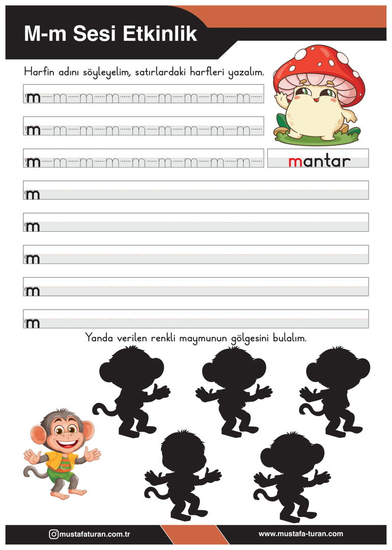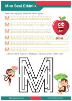 1. Sınıf M-m Sesi İlkokuma Yazma Etkinlikleri