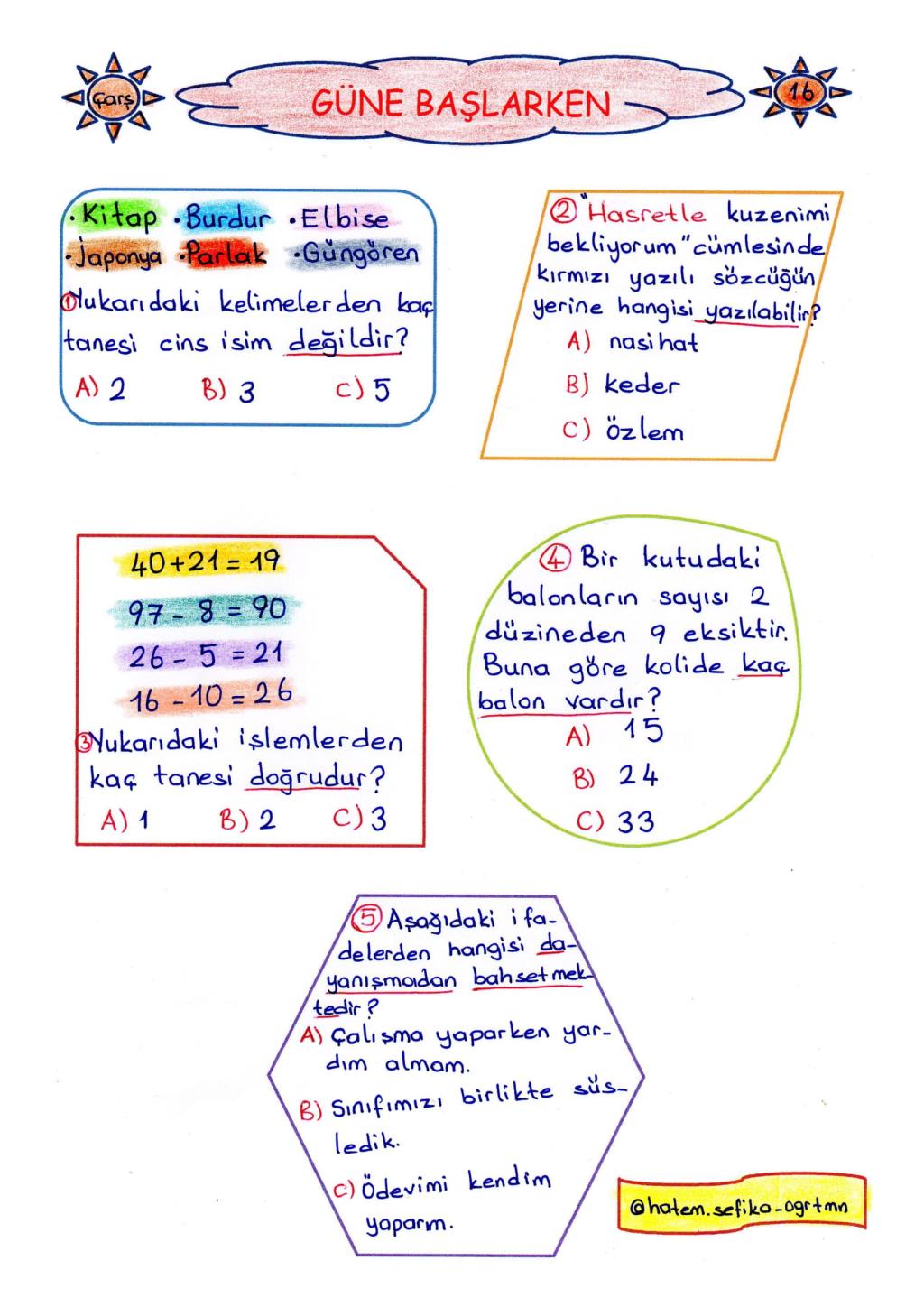 2. Sınıf Güne Başlarken 16. Hafta Etkinlikleri