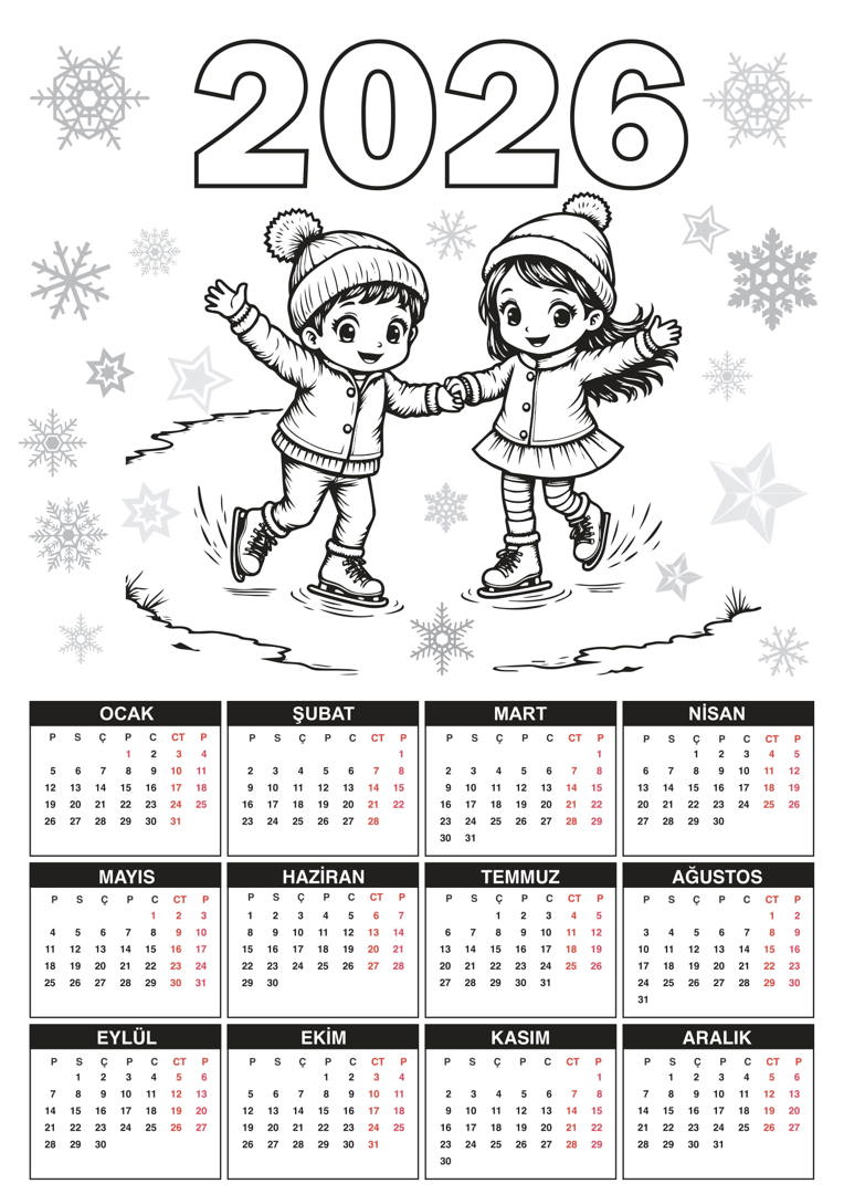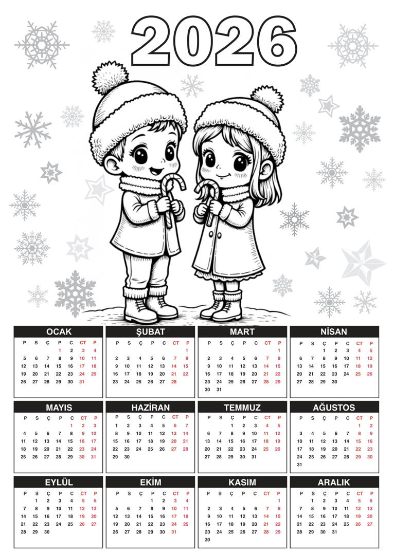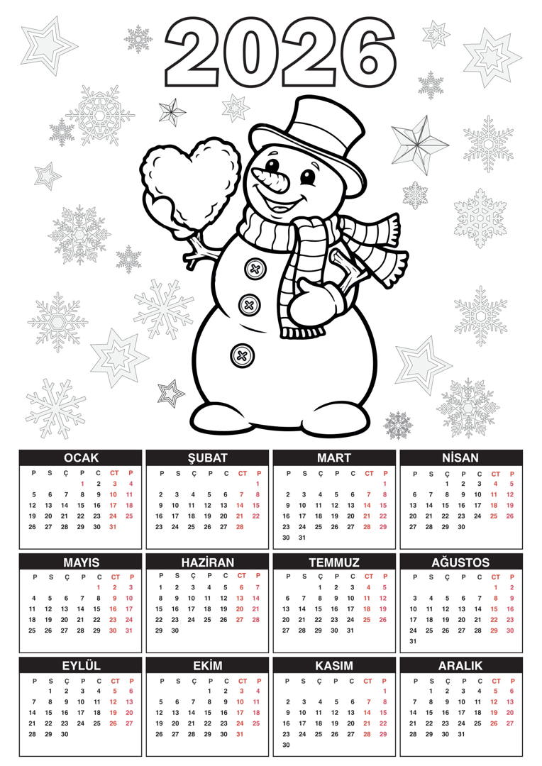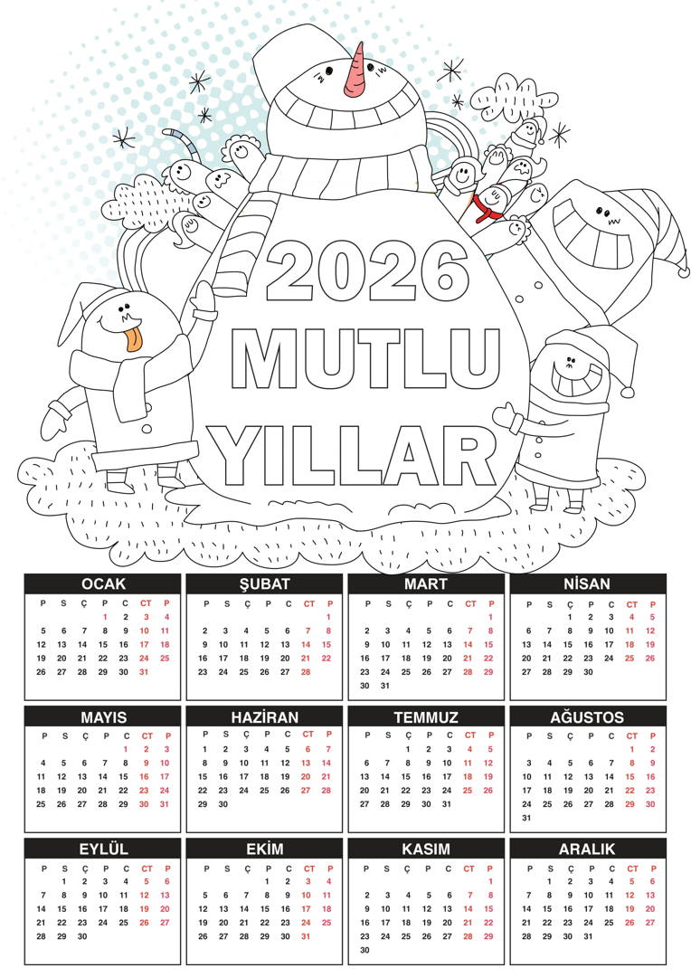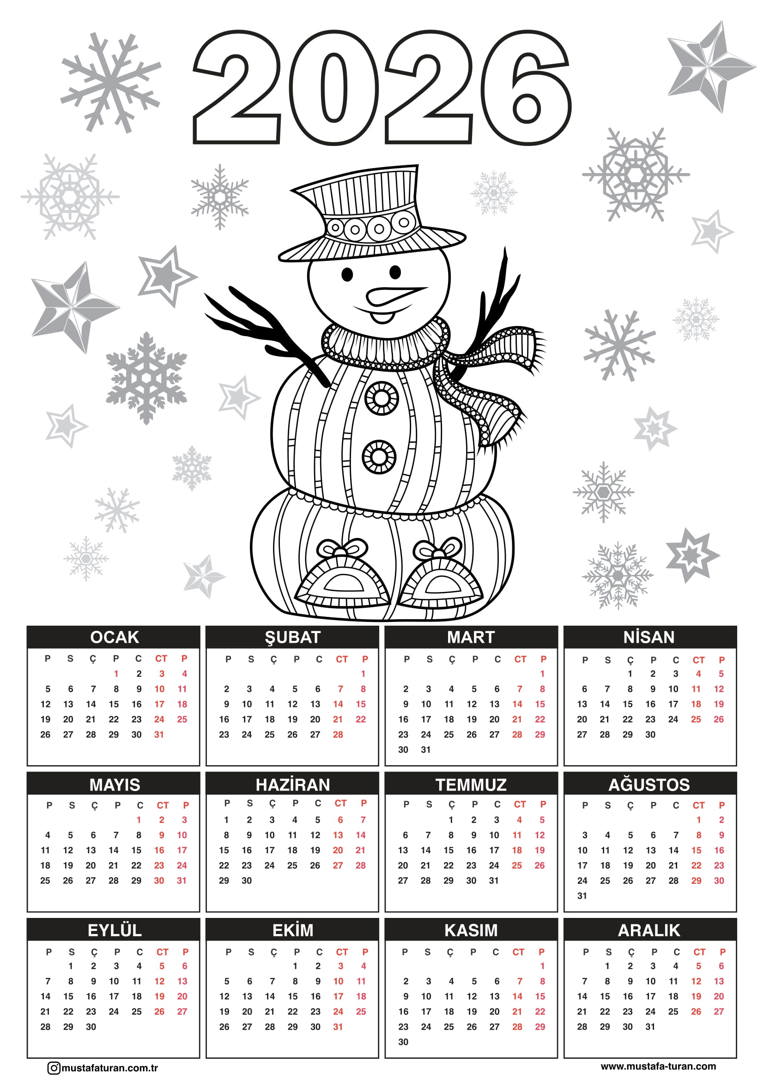 2026 Yılının Hepimize Sağlık Mutluluk ve Huzurun Getirmesi Temnnisiyle. Farklı İçerikler ve Görsellerle Hazırladığımız 2026 Takvimi Boyama Etkinlikleri