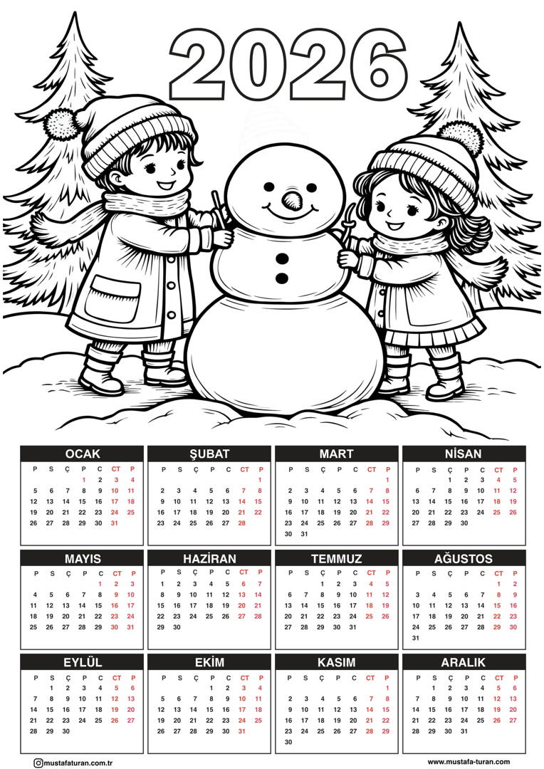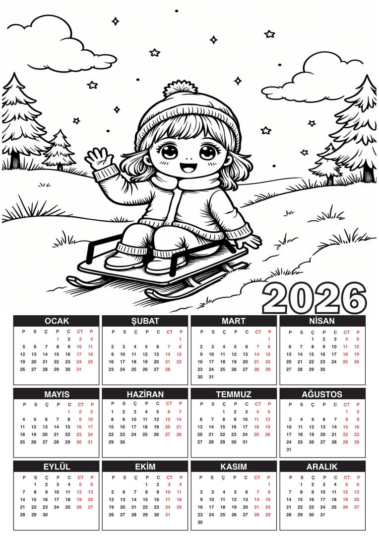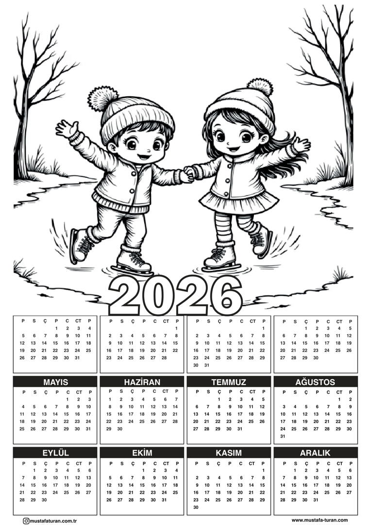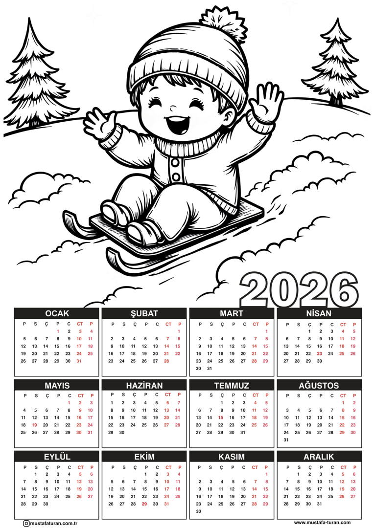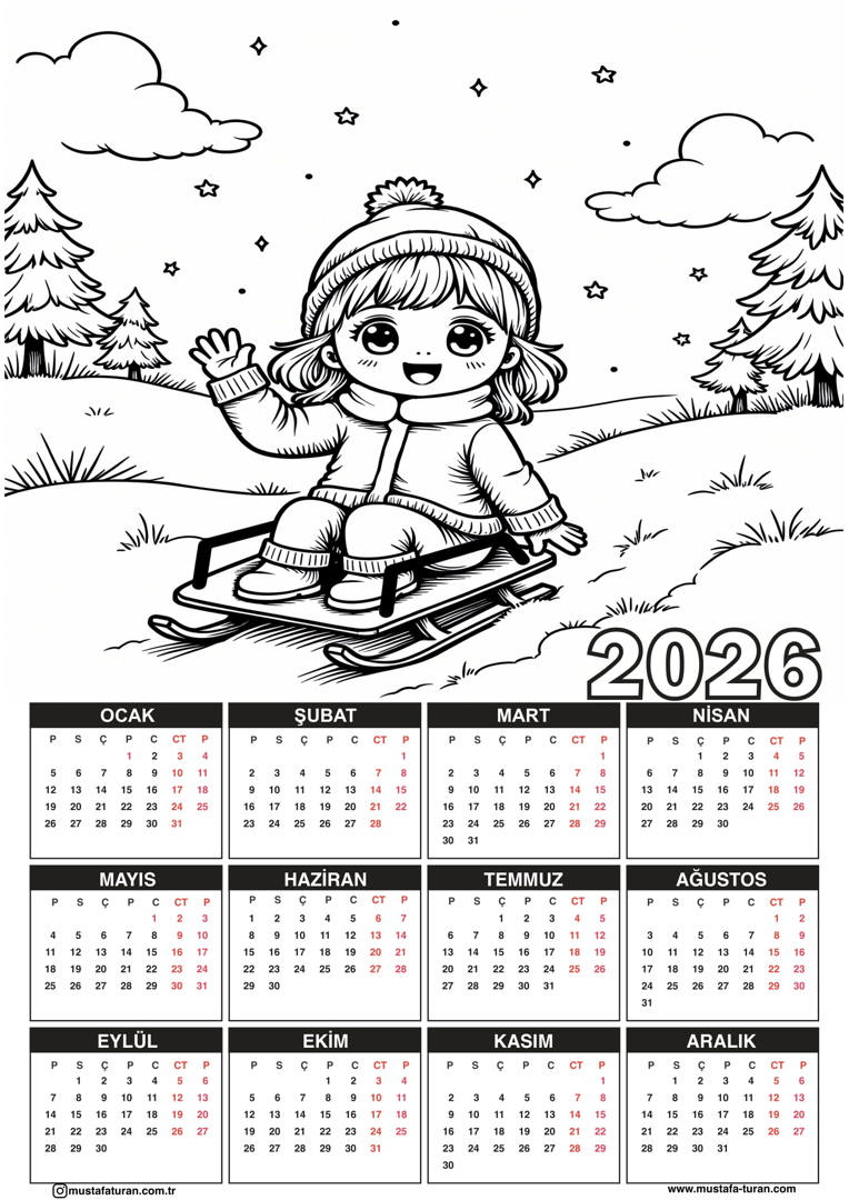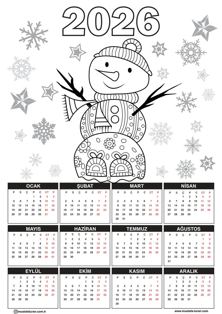 2026 Yılının Hepimize Sağlık Mutluluk ve Huzurun Getirmesi Temnnisiyle. Farklı İçerikler ve Görsellerle Hazırladığımız 2026 Takvimi Boyama Etkinlikleri