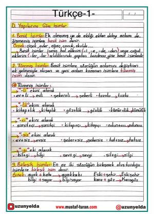 📌Türkçe-Basit,Türemiş ve Birleşik İsimler