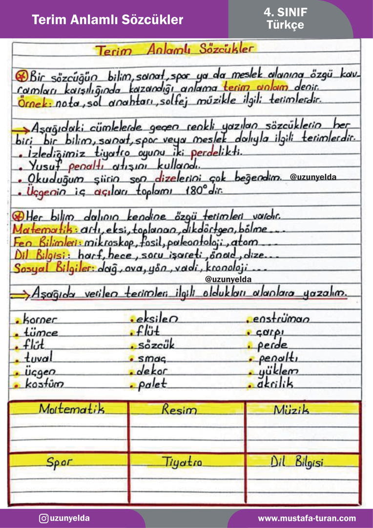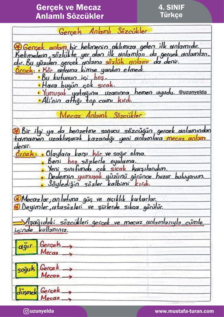 📌Türkçe-Gerçek,Mecaz ve Terim Anlamlı Sözcükler