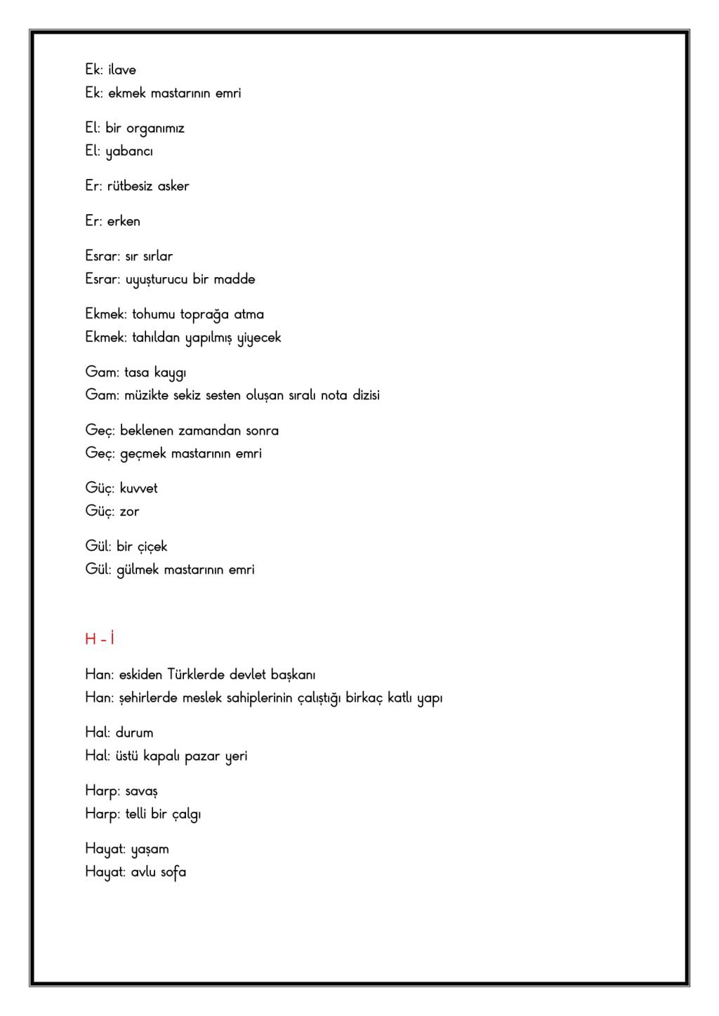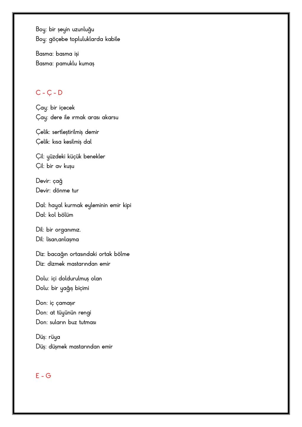 4. Sınıf Türkçe Dersi Eş Sesli Kelimeler Sözlüğü