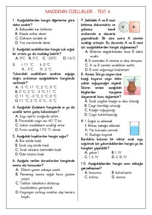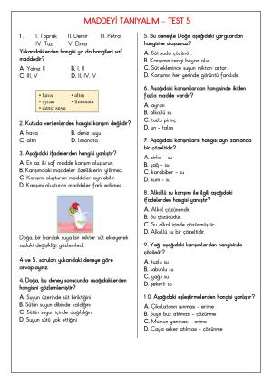 Fen Bilimleri Maddeyi Tanıyalım Konu Testleri