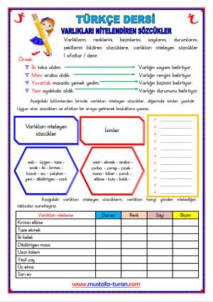 4. Sınıf Türkçe Dersi Varlıkları Nitelendiren Sözcükler ( Sıfatlar ) Etkinliği
