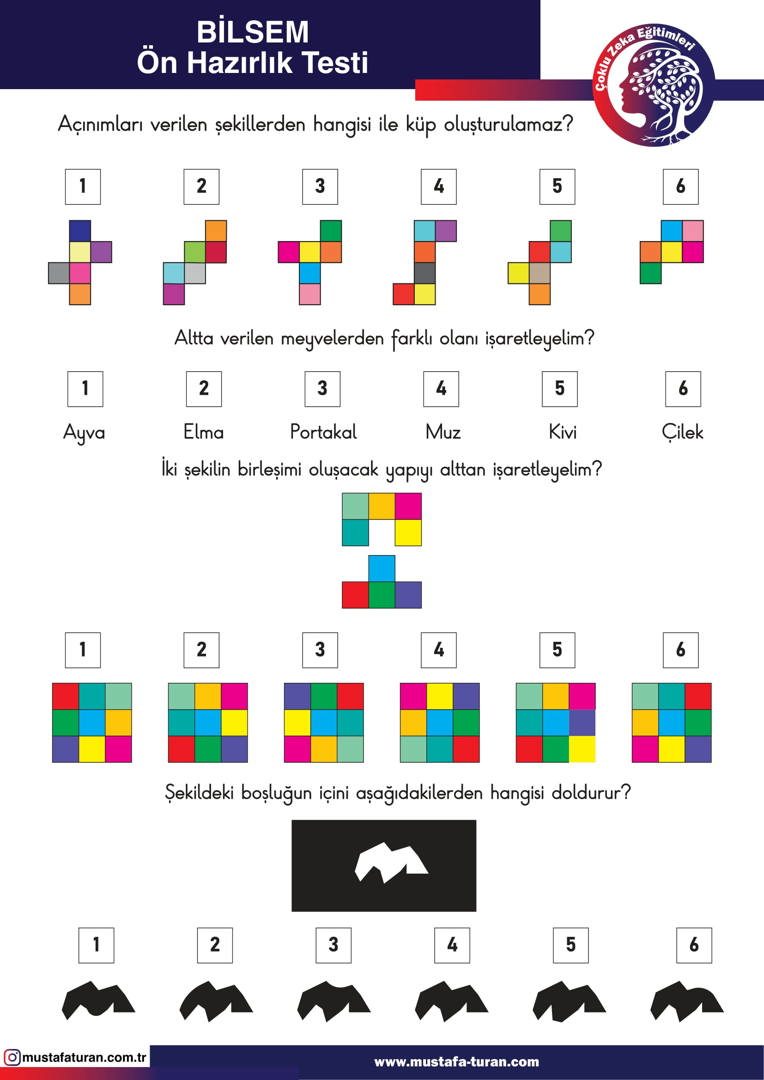 / Çoklu Zeka & Dikkat Güçlendirme Etkinlikleri / BİLSEM Ön Test Sınav Avkiviteleri