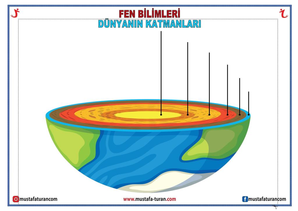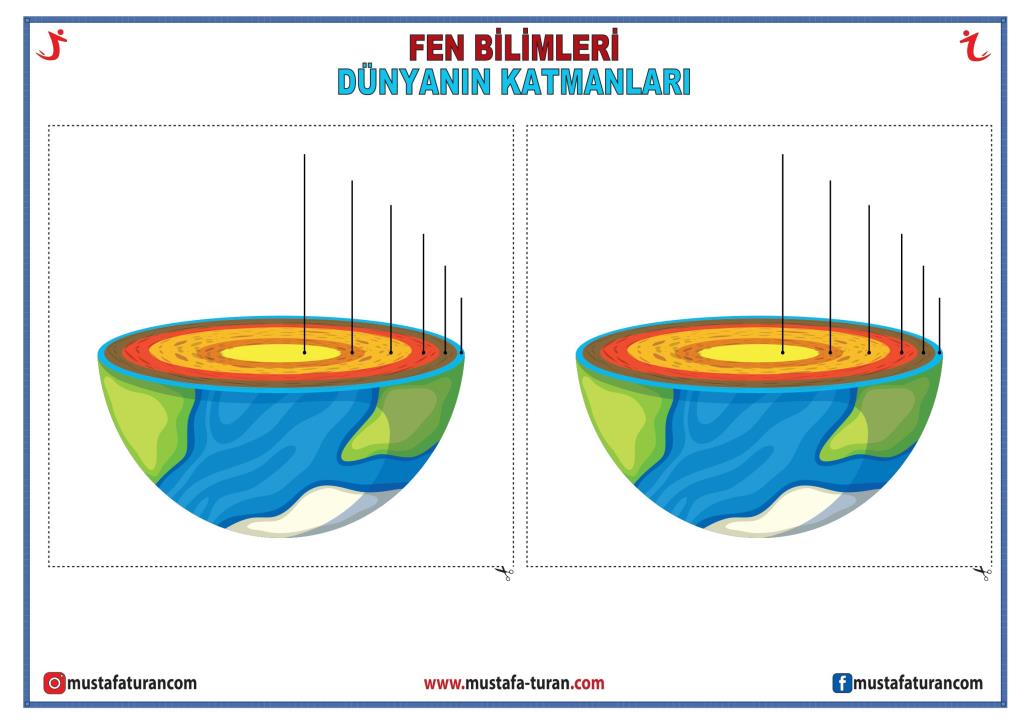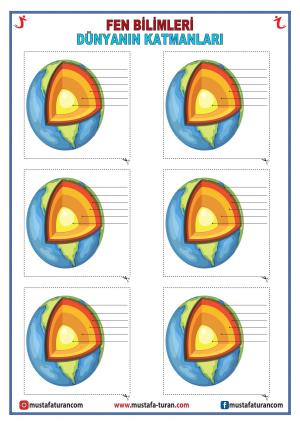 3. Sınıf Fen Bilimleri Dersi Dünyanın Katmanaları Kes Yapıştır Defter Etkinlikleri