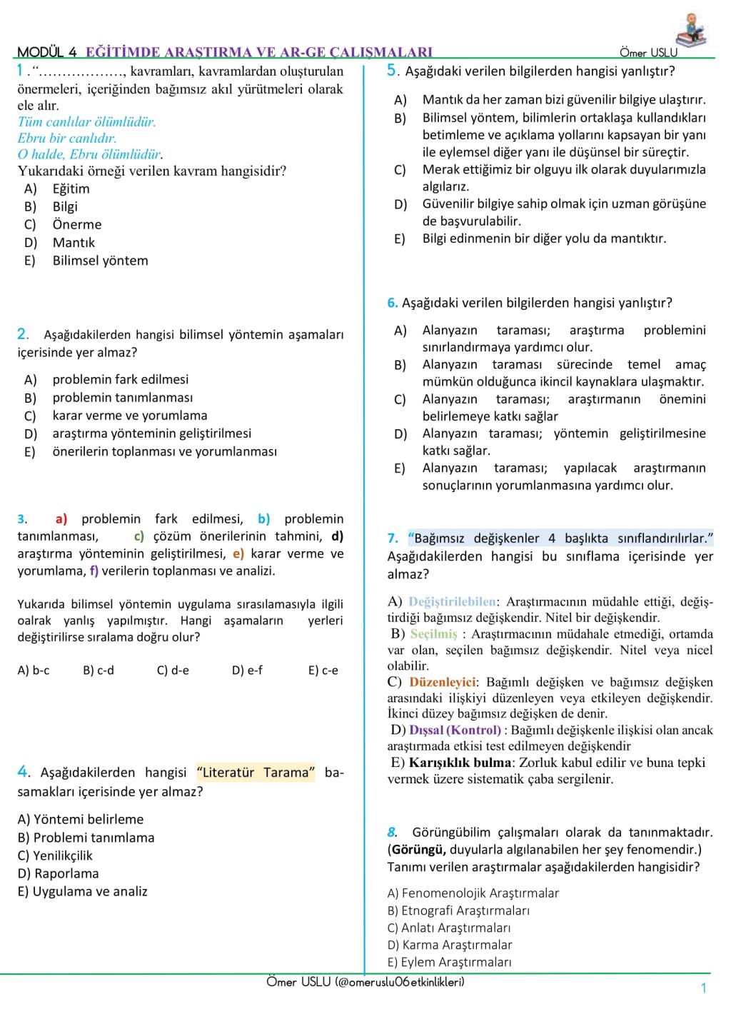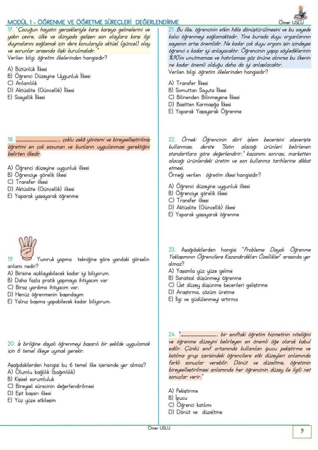UZMAN ÖĞRETMENLİK Modül 1-2-3-4-5-6-7-8-9 İçeren Soru Bankası